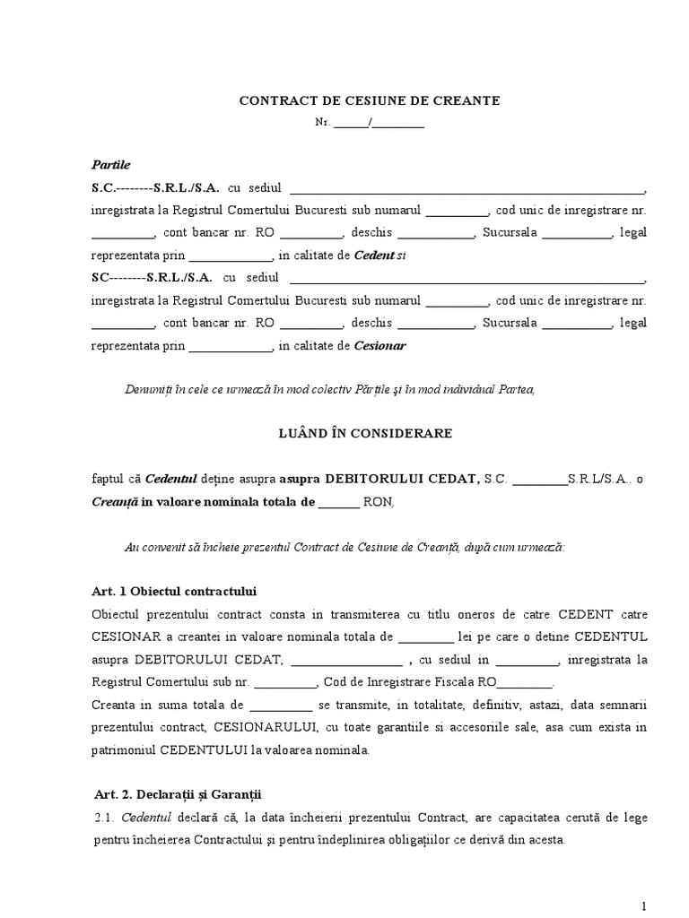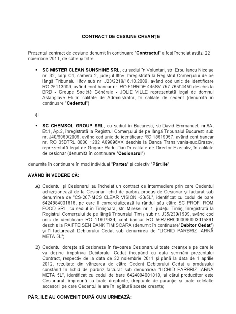 Descarcati gratuit cea mai buna varianta de statute, procuri ,contracte , imputerniciri, cereri , decizii,autorizatii,coduri, legi, ordonante 2015. În timp ?i spa?iu, a tuturor. 1 prezentul contract are ca obiect cedarea de catre cedent a dreptului de creanta asupra debitorilor cedati , enumerati la art.