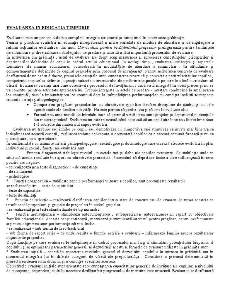 Teoria i practica evalurii n educaie nregistreaz o mare varietate de moduri de abordare i de nelegere a rolului aciunilor evaluative. Inv.mediu de specialitate educatia timpurie 22%. Evaluarea impactului politicilor în domeniul educației timpurii în românia, prin realizarea unui studiu de impact la nivel național și european;