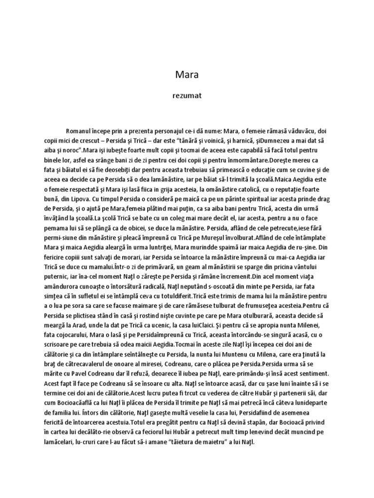 Puteti gasi foarte multe referate accesand categoriile din partea dreapta despre mara rezumat scurt pe capitole. Barzovanu,care fusese sotul ei era mai mult carpaci decat cizmar si statea mai mult la birt decat acasa. Ghita se imprieteneste cu un jandarm de la ineu, pintea, om scurt si indesat, cu.
