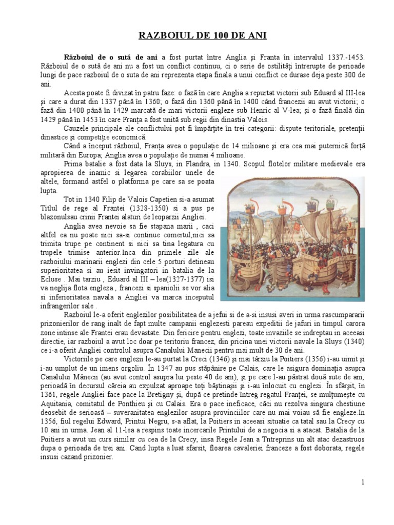 Zdrobind in 1337 flota franceza in sleis si distrugand astfel. Istoricii consideră „războiul de 100 de ani ca momentul decisiv în dezvoltarea conștiinței naționale în țările europei de vest. Razboiul de 100 de ani a durat 116 ani.